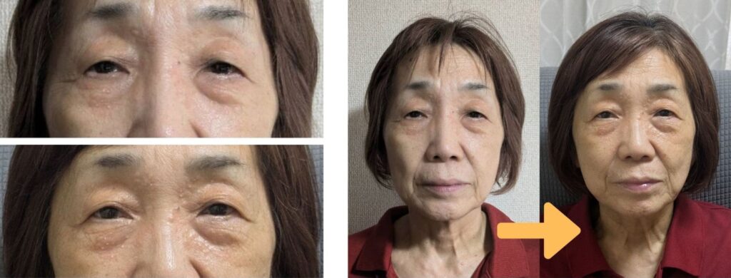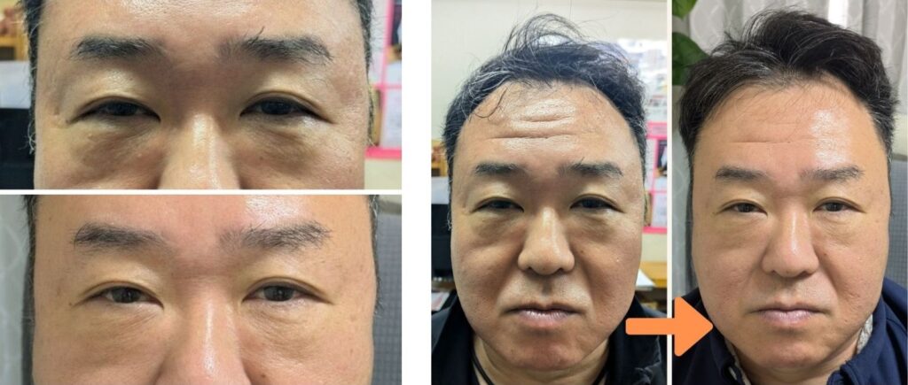 施術後、くぼんできた瞼(まぶた)が徐々にハリが出てきた。顔に立体感が出て、肌トーンが明るくなり、より明るい印象になりました。