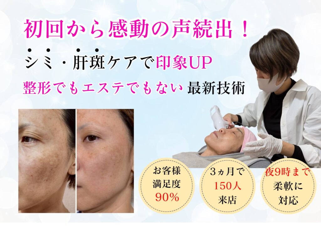 もう悩まない!シミケアのプロが解決します。最短10分で実感!痛み無しの新しい再生美容法「生」エクソソームで肌の土台から若返りをサポート!