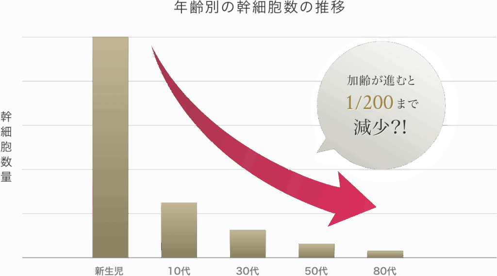 残念ながら、エクソソームの分泌量は年齢とともに減少していきます。20代をピークに、40代では約半分、60代では約3分の1にまで減少するといわれています。